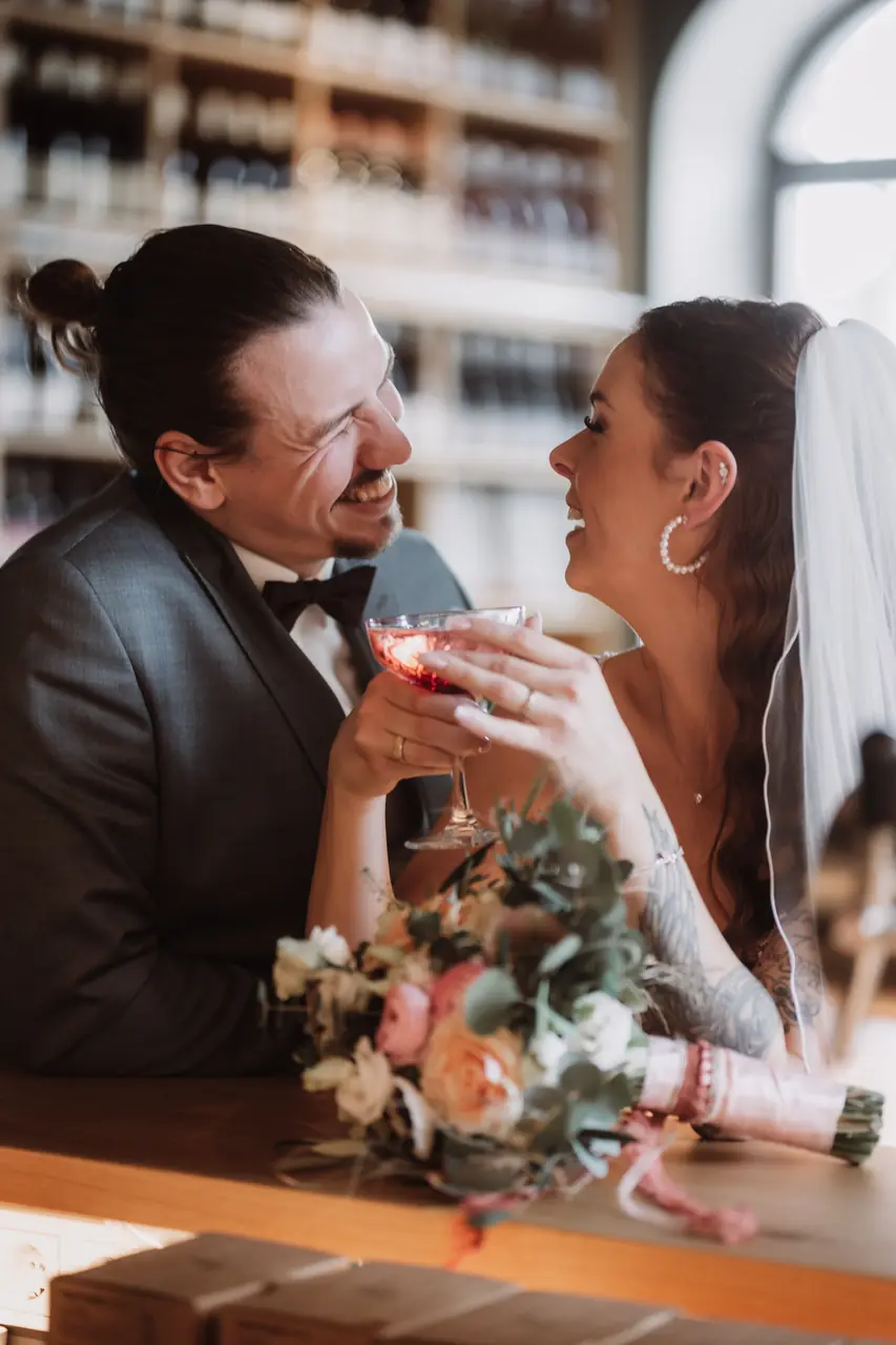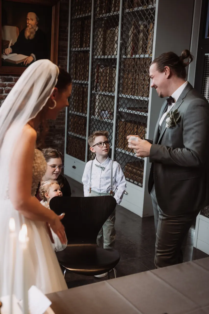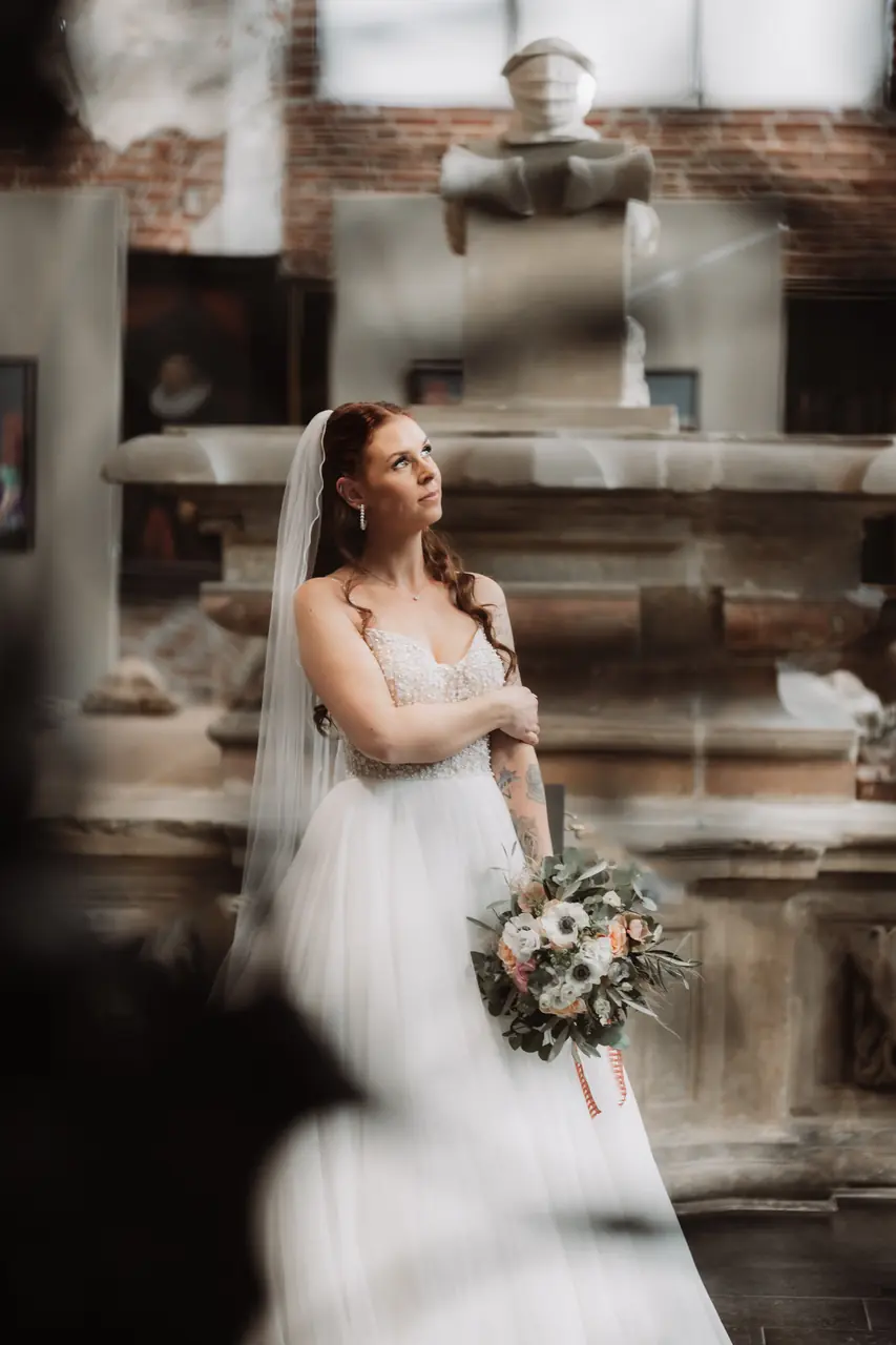Maike und Patrick haben im kleinen Kreis gefeiert, aber besonderen Wert auf Eleganz und Qualität gelegt. Ich war von der ersten Minute bei getting ready dabei und durfte miterleben, wie nicht nur die Mama, sondern auch ihre Tochter juna zur kleinen Braut wurde. In der Johannes a Lasco Bibliothek in Emden fand der First Look des Brautpaares und die sehr emotionale Trauung statt, bei der ich natürlich auch wieder selbst ein Taschentuch benötigt habe. Bevor es zur Feier ging, haben wir in der eigenen Bar, die Havenbar in Emden, noch das Brautpaarshooting inkl. leckerer Cocktails gemacht. Die Feier fand dann in der eleganten Hochzeitsscheune von Haase Catering in Riepe statt und dort wurden alle Kulinarisch mit Livecooking und allem, was das Herz begehrt, verwöhnt. Das war wirklich das beste Hochzeitsessen in dieser Hochzeitssaison!